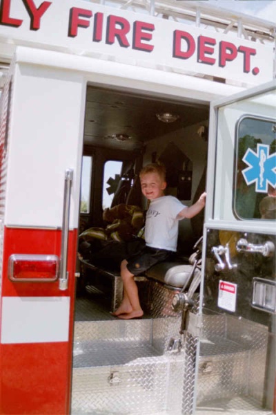 Stephen getting ready to go put out a fire.